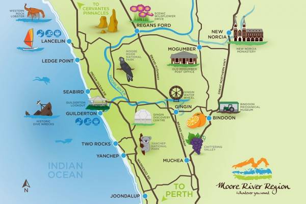 The Moore River Region begins just an hours drive north of Perth, Western Australia. This naturally unspoiled destination is ideal for a day trip from Perth, a weekend getaway or a short stop on your way to the Coral Coast. If you are deciding where to stay in the Moore River Region, Country Values Holiday Homes provides accommodation in the coastal towns of Guilderton, Seabird, Ledge Point and Lancelin, and the inland towns of Gingin and Bindoon.